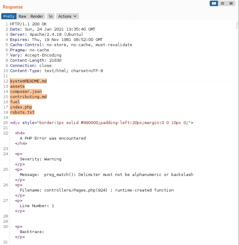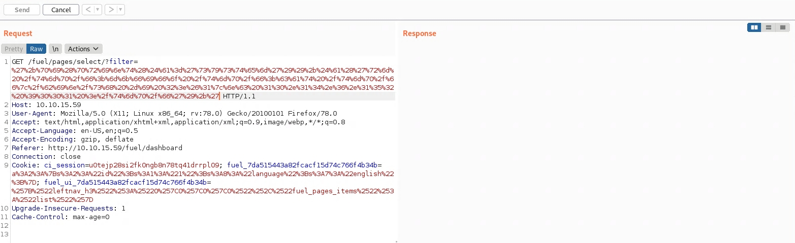 Reading the python script, we can see that it basically sends a payload to /fuel/pages/select/?filter variable which can execute system commands.