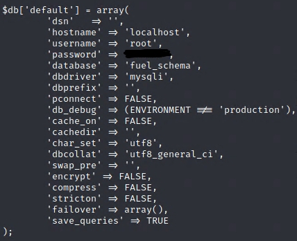 So that means that there are some credentials stored in a file. I started to snoop around the Fuel CSM GitHubrepo and found an interesting file.